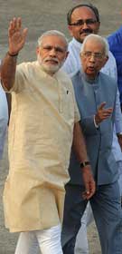 আসার কথা ছিল বিকেল পাঁচটা নাগাদ। এলেন নির্ধারিত সময়ের ৪৫ মিনিট আগে। শনিবার বিকেল ৪টে ২৩ মিনিটে বায়ু সেনার বিশেষ বিমানে দমদম বিমানবন্দরে এসে পৌঁছলেন প্রধানমন্ত্রী নরেন্দ্র মোদী। বিমানবন্দরে তাঁকে অভ্যর্থনা জানানোর জন্য উপস্থিত ছিলেন রাজ্যপাল কেশরীনাথ ত্রিপাঠি, অর্থমন্ত্রী অমিত মিত্র এবং স্বরাষ্ট্রসচিব বাসুদেব বন্দ্যোপাধ্যায়। প্রধানমন্ত্রী হওয়ার পর এই প্রথম বার তিনি এ রাজ্যে এলেন।