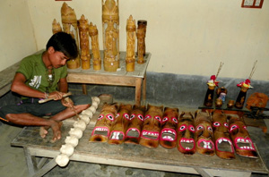 দক্ষিণ দিনাজপুরের কুশমণ্ডি ব্লকের মহিষবাথানের মুখা শিল্প বিখ্যাত। এ রাজ্যের তো বটেই, দেশে, এমনকী বিদেশেও ঘর সাজানোর কাজে ব্যাপক চাহিদা রয়েছে এই কাঠের মুখোশের। একটি ভাল মুখোশ তৈরিতে সময় লাগে দিন তিনেক। মহিষবাথানের মুখা শিল্পীদের সংগঠনের সম্পাদক পরেশ সরকার জানান, এক একটি ভাল মুখোশ অন্তত ২৫০০-৩০০০ টাকা বা তারও বেশি দামে বিক্রি হয়। তবে শিল্পীরা দিনে ৫০০-৬০০ টাকার বেশি পাননা।