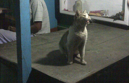 কথা না বাড়িয়ে রওনা হয়েছিলাম। শামুকতলা রোড হয়ে বারবিশা। সেখান থেকে কুমারগ্রাম। রাত ৮টাতেই সুনসান বাজারর। থানার পাশের ডাকবাংলোয় বসে ঝিঁ ঝিঁ-র আওয়াজ শুনি। পাশেই একটা পাইস হোটেলে দেখি দোকান মালিক ইয়া মোটা একটা বেড়ালের সঙ্গে খুনসুটি করে চলেছেন। লোকজন মেলা বার। তাঁর সঙ্গেই কিছুক্ষণ কথা হোক। যত ভোটের কথা বলি। ততই উনি বেড়ালের গল্প করে চলেন।