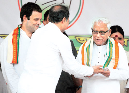 যেন আগে থেকে মহড়া দেওয়া ছিল! প্রথম বারের জন্য এক মঞ্চে এসে নিখুঁত ভাবে সুর মিলে গেল রাহুল গাঁধী আর বুদ্ধদেব ভট্টাচার্যের। রাজ্যে শেষ দুই পর্বের ভোটের আগে যৌথ প্রচারের মঞ্চ থেকে দু’জনেই জোট সরকারের আগমন-বার্তা ঘোষণা করে দিলেন!