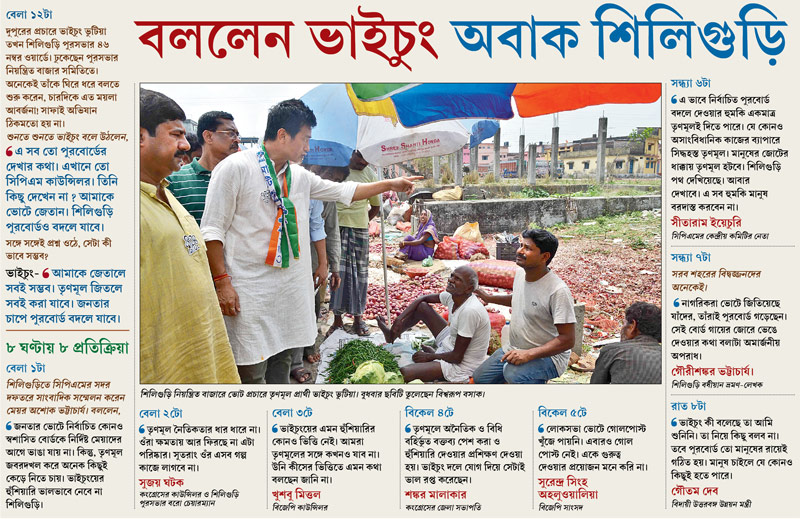 শিলিগুড়ি নিয়ন্ত্রিত বাজারে ভোট প্রচারে তৃণমূল প্রার্থী ভাইচুং ভুটিয়া।