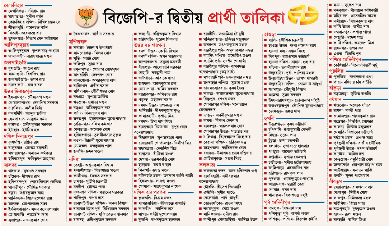 বিজেপি-র দ্বিতীয় প্রার্থী তালিকা