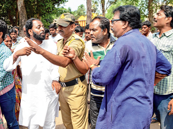 একটি দুর্ঘটনায় মৃত্যু নিয়ে বিজেপি রাজনীতি করছে, এই অভিযোগ তুলে দেবেনবাবুরা বিক্ষোভ দেখাতে থাকেন। প্রসেনজিৎবাবুর উদ্দেশে দেবেনবাবুকে বলতে শোনা যায়, ‘‘মৃত্যু নিয়ে রাজনীতি করছিস? চাবকে সিধে করে দেব।’’ বিজেপির অভিযোগ, বিক্ষোভের সময়ে প্রসেনজিৎবাবুকে পিটিয়ে জাঙ্গিপাড়াছাড়া করার হুমকি দেওয়া হয় এবং ধাক্কাধাক্কি করা হয়। দু’পক্ষের গোলমাল শুনে পুলিশ গিয়ে পরিস্থিতি নিয়ন্ত্রণের চেষ্টা করে। প্রসেনজিৎবাবুকে উদ্ধার করে থানার ভিতরে নিয়ে যাওয়া হয়। দেবেনবাবুকে থানা চত্বর থেকে দলবল নিয়ে পুলিশ সরে যেতে বললেও তিনি প্রথমে বেরোতে অস্বীকার করেন। পরে পুলিশ গ্রেফতারির হুমকি দেওয়ায় তিনি সরে যান। থানা চত্বরে গোলমাল বাধানো এবং হুমকি দেওয়ার অভিযোগ উঠলেও দেবেনবাবুর বিরুদ্ধে পুলিশ কোনও ব্যবস্থা নেয়নি বলে ক্ষোভ প্রকাশ করেন বিজেপি নেতাকর্মীরা। পুলিশ জানায়, লিখিত অভিয়োগ জানানো হলে ব্যবস্থা নেওয়া হবে।