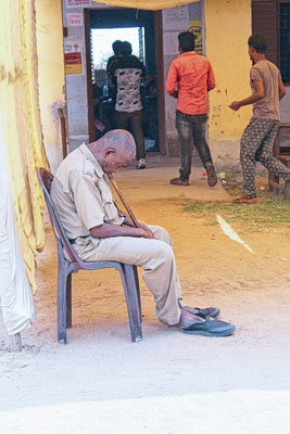 ভিতরে চলছে ভোট। রঘুনাথপুর গার্লস হাইস্কুলের বুথের সামনে তখন তন্দ্রাচ্ছন্ন হোমগার্ড।