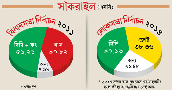 তৃণমূল নেতৃত্বের একটা বড় অংশের অবশ্য দাবি, টানা চারবারের বিধায়ক হওয়ার সুবাদে শীতলবাবুর জনসংযোগ ভাল। তাঁর আমলে সাঁকরাইলে উন্নয়নও হয়েছে। বিধায়ক কোটার টাকা খরচের পরিমাণও প্রায় ৭২ শতাংশ। সে দিক থেকে শীতলবাবুই এগিয়ে। গোষ্ঠীদ্বন্দ্বের চোরা স্রোত শীতলবাবুর কতটা ক্ষতি করতে পারবে বোঝা মুশকিল। আর শীতলবাবুর সাফ জবাব, ‘‘আমরা সবাই একসঙ্গেই কাজ করছি। আমার উন্নয়নের কাজের নিরিখেই জিতব।’’