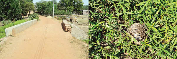 এই কালভার্টেই খুন করা হয়েছিল শেখ ফজল ও দুখীরামবাবুকে (বাঁ দিকে)। তখনও বোমা পড়ে রয়েছে মল্লিকপাড়ায় (ডান দিকে)
