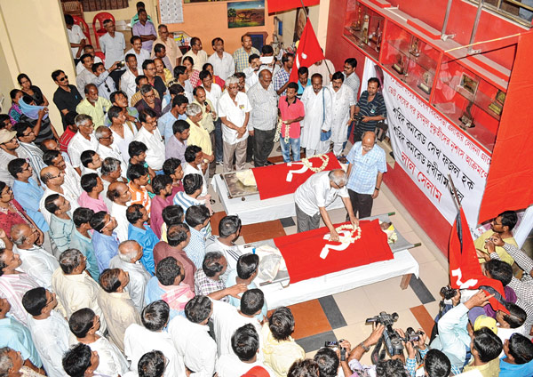 বর্ধমান শহরের পার্কার্স রোডে সিপিএমের দলীয় অফিসে আনা হয়েছিল খণ্ডঘোষে নিহত দুই সিপিএম কর্মীর দেহ। সেখানেই শ্রদ্ধা জানান নেতা-কর্মীরা।