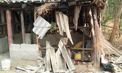 গোঘাটের কামচে গ্রামে সিপিএম সমর্থকের বাড়িতে ভাঙচুর। ছবি: মোহন দাস।