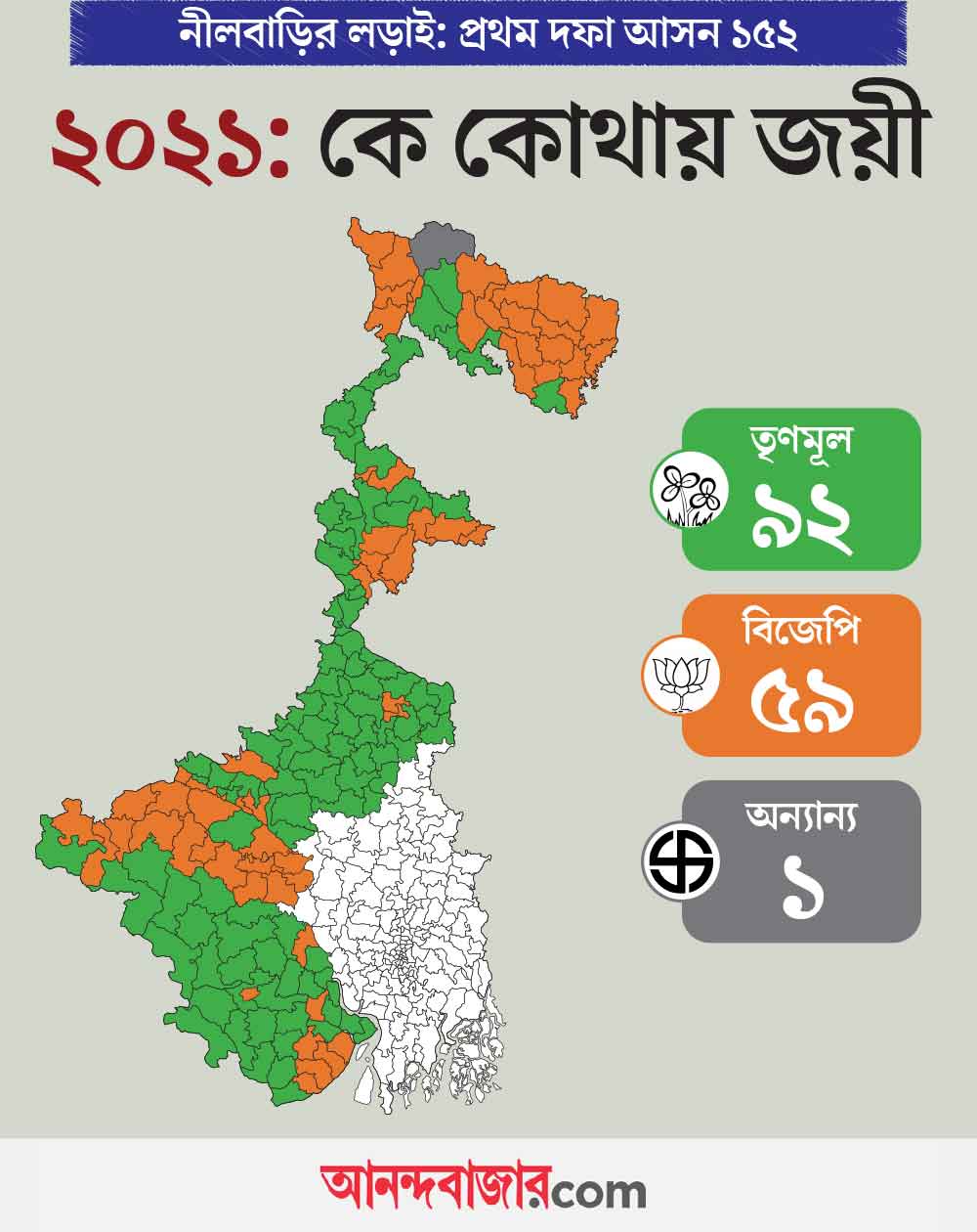 গত পাঁচ বছরে দু’টি বড় ভোটের (২০২১ সালের বিধানসভা এবং ২০২৪ সালের লোকসভা) পরিসংখ্যান বলছে, এই ১৫২টি আসনে সেয়ানে-সেয়ানে লড়াইয়ে ছিল তৃণমূল-বিজেপি। গত বিধানসভায় যে ফল হয়েছিল, লোকসভায় তার অনেক কিছু বদলে গিয়েছিল। এই বিধানসভা নির্বাচনের আগে ১৫২টি আসনে কেবল বিজেপি এবং তৃণমূলের মধ্যে দ্বিমুখী লড়াই নয়, বরং বহুমুখী সমীকরণ তৈরি হয়েছে। গত বিধানসভা ভোটের তিন বছরের মাথায় হয়েছিল লোকসভা ভোট। সেই নির্বাচনে বেশ কিছু হিসাবে বদল হয়েছিল। লোকসভা নির্বাচনের দু’বছরের মাথায় হতে চলেছে বিধানসভা ভোট। সেখানেও হিসাব বদলের বিভিন্ন উপকরণ মজুত।