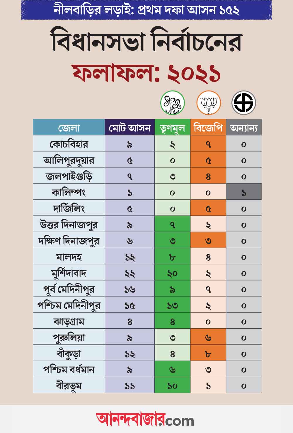 ২০১৯ সালের লোকসভা নির্বাচনে ‘ধাক্কা’ খাওয়ার পরে ২০২১ সালের বিধানসভায় তা কিছুটা সামাল দিয়েছিল তৃণমূল। ২০২৪ সালের লোকসভা ভোটে সেই ক্ষতে আরও কিছুটা প্রলেপ দিতে সমর্থ হয়েছিল রাজ্যের শাসকদল। উত্তরবঙ্গ এবং জঙ্গলমহল মিলিয়ে মোট চারটি লোকসভা আসন বিজেপির থেকে ছিনিয়ে নেয় তৃণমূল। আবার বিজেপি-ও পাল্টা ধাক্কা দিয়েছিল নির্দিষ্ট কিছু জেলায়। যেমন শুভেন্দু অধিকারীর জেলা পূর্ব মেদিনীপুরে ২০২১ সালের ভোটে ১৬টি আসনের মধ্যে ৯টিতে জিতেছিল তৃণমূল। কিন্তু গত লোকসভায় মাত্র একটি বিধানসভায় এগিয়ে ছিল তারা। বিজেপি এগিয়েছিল বাকি ১৫টিতে।