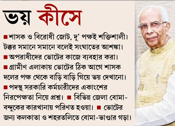কেন্দ্রীয় স্বরাষ্ট্র মন্ত্রকও মনে করছে, পাঁচ বছর ক্ষমতায় থাকার ফলে তৃণমূল যেমন শক্তিসংগ্রহ করেছে, তেমনই সিপিএম ও কংগ্রেস আগে থেকে জোট বাঁধায় বিরোধী শক্তিও আর দুর্বল নয় তেমন। শাসক দলের সঙ্গে কিছু জায়গায় সমানে-সমানেই টক্কর নিচ্ছে তারা। ফলে রাজ্যপালের মতো কেন্দ্রেরও আশঙ্কা, এই রাজ্যের ভোটে আগামী দিনগুলিতে ফের রক্ত ঝরতে পারে।