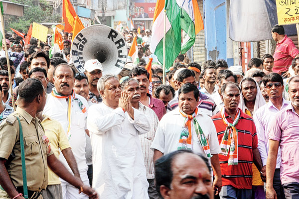 তৃণমূলের সঙ্গে জোট ভেঙে যাওয়ায় ২০১৩-র পঞ্চায়েত ভোটে সবাই যখন ভাবছে কংগ্রেসের অস্তিত্ব বুঝি এ বার গেল। সবাইকে অবাক করে সে বার বাঘমুণ্ডি, ঝালদা ১ ও আড়শায় (বাঘমুণ্ডি বিধানসভা কেন্দ্রের সঙ্গে যুক্ত অংশে) কংগ্রেসের দুর্গ অক্ষতই রয়ে যায়। তা অটুট পরের বছর লোকসভা ভোটেও। বাঘমুণ্ডি কেন্দ্রে কংগ্রেসের থেকে পিছিয়ে ছিল তৃণমূল। বাঘমুণ্ডি কেন্দ্রে ১,৭৩,৭৪৫ ভোটের মধ্যে কংগ্রেসের ভোট ছিল ৬৯,৬৫৯। সেখানে তৃণমূল ৫৩,১৪৩ আর বামফ্রন্ট পায় ৩৪,৩৯৬ ভোট। এ বার নেপালবাবু পাশে পেয়েছেন ফরওয়ার্ড ব্লক-সহ বামফ্রন্টের সমস্ত শরিকদের। নেপালবাবুর মনোনয়নে হাজির ছিলেন ফব-র কেন্দ্রীয় কমিটির সদস্য বীরসিংহ মাহাতো। তিনি বলেছেন, ‘‘লোকসভার নিরিখে কংগ্রেস ও বামফ্রন্টের মিলিত ভোট তৃণমূলের থেকে দ্বিগুণ। এতেই সব পরিষ্কার। গণতন্ত্র রক্ষার লড়াইয়ে আমরা সবাই নেপালের সঙ্গে রয়েছি।’’ আর নেপালবাবু দাবি করেছেন, শুধু ভোটের সময় নয়, তিনি বছরভর গ্রামে গ্রামে ঘুরে কাজ করেন। দিল্লি হোক বা নবান্ন, নিজে তহবিল চেয়ে এনে উন্নয়নের কাজ করেন। মানুষ তাঁকে চেনেন।