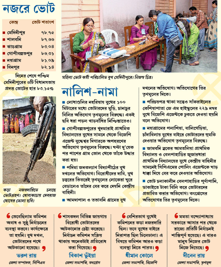 দিনের শেষে পশ্চিম মেদিনীপুরের ৬টি বিধানসভায় প্রদত্ত ভোটের হার ৮৩.১৫%। এক নজরে দেখে নেওয়া যাক ভোটের কিছু টুকিটাকি খবর।