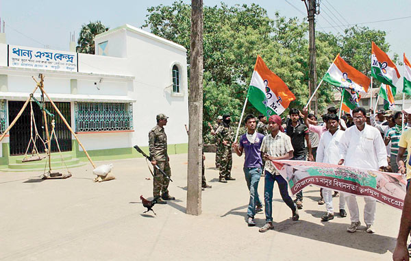 আস্ত ট্রেন গায়েব করেছিলেন জাদুকর পি সি সরকার। আস্ত পার্টি অফিস ‘গায়েব’ হতে দেখল নানুর! ঠিক গায়েব নয়। অফিস রইল একই জায়গায়। তবে, তা যে শাসকদলের পার্টি অফিস, এখন দেখে বোঝা কার সাধ্য! দু’দিন আগেও তার গেরুয়া-সবুজে রাঙা দেওয়ালে শোভা পেত দলনেত্রীর ছবি। নানুরের একটা বড় অংশ নিয়ন্ত্রিত হতো ওই চার দেওয়ালের ভিতর থেকেই। আর তৃণমূলের সেই অফিসই কিনা আপাদমস্তক রং পাল্টে রাতারাতি হয়ে গেল ‘ধান্য ক্রয় কেন্দ্র’!