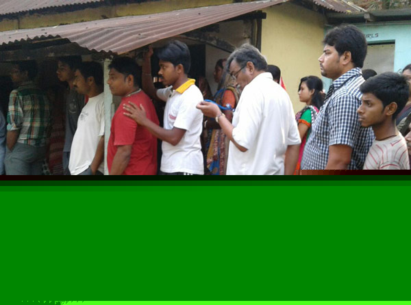 নারায়ণগড়ে ভোটের লাইনে সূর্যকান্ত মিশ্র। —নিজস্ব চিত্র।
