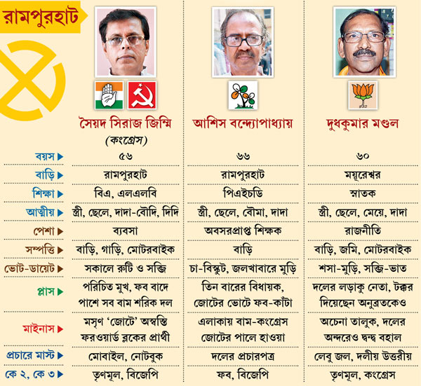 রামপুরহাটে মুখোমুখি তিন প্রার্থী