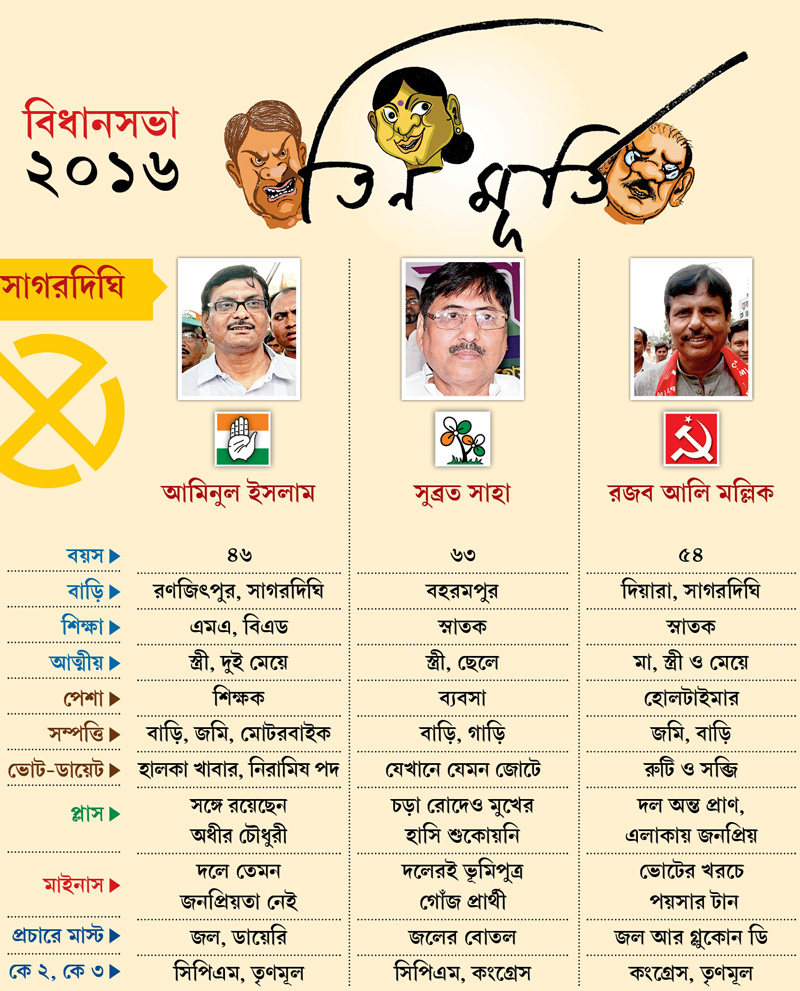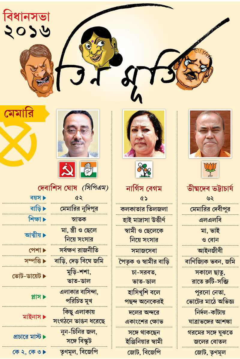 এবার ভোটের মুখোমুখি তিন প্রার্থী।