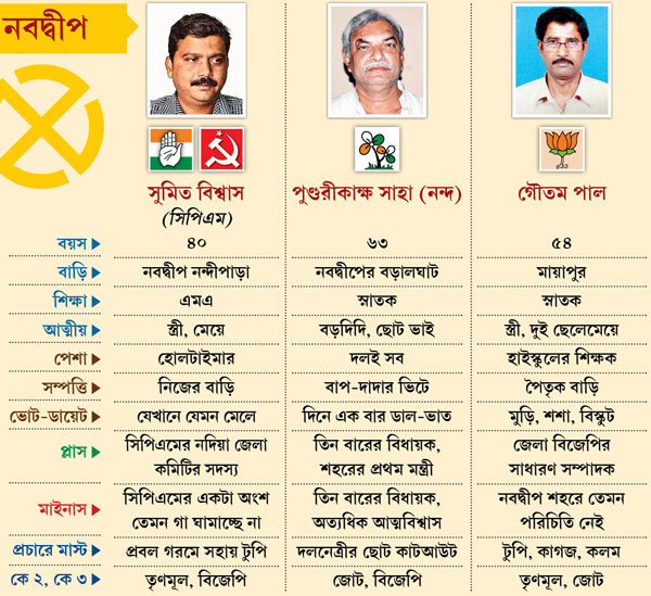 এবার ভোটে নবদ্বীপের মুখোমুখি তিন প্রার্থী।