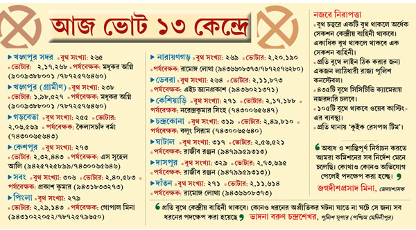 আজ ভোট ১৩ কেন্দ্রে