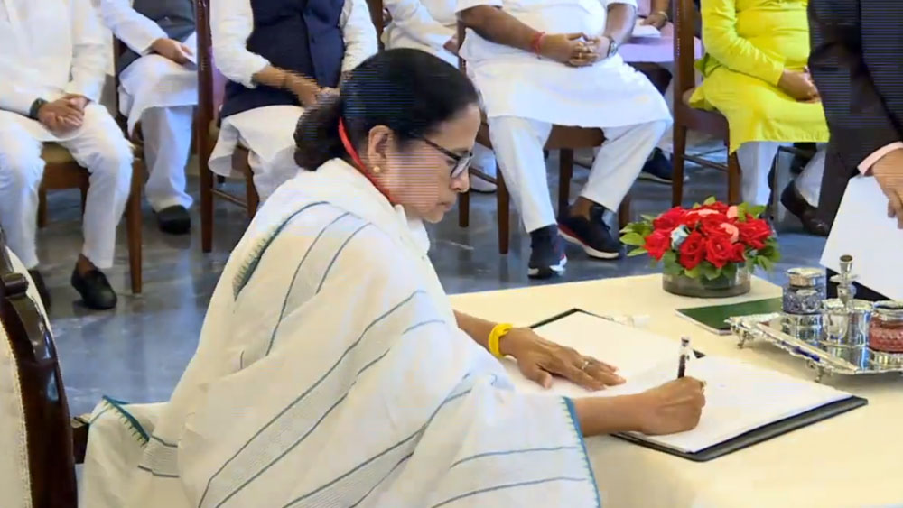 তৃতীয় বারের জন্য মুখ্যমন্ত্রী হিসেবে শপথ বাক্য পাঠ করলেন মমতা বন্দ্যোপাধ্যায়। তাঁকে শপথ বাক্য পাঠ করলেন রাজ্যপাল।