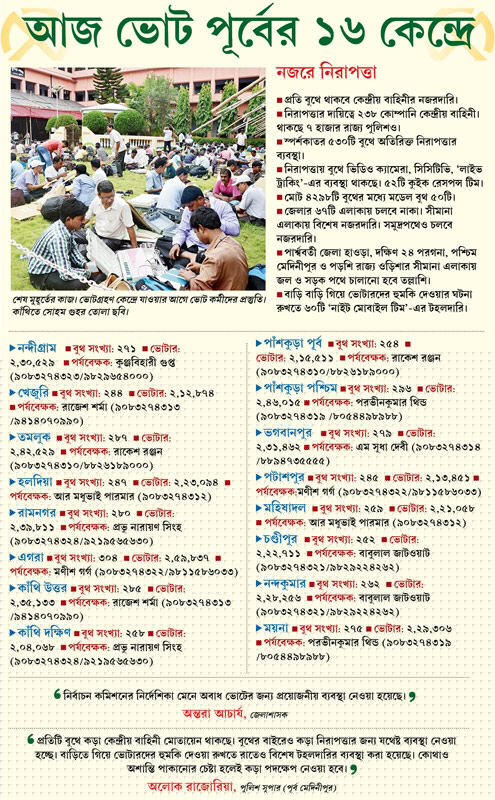 এ বার ভোট-পর্বেও বারবার পুলিশের সক্রিয় ভূমিকাই দেখেছে পূর্ব মেদিনীপুর। ভোট ঘোষণার পরপরই রামনগরের সিপিএম প্রার্থী তাপস সিংহের উপর হামলার অভিযোগ উঠেছিল তৃণমূল কর্মীদের। সে ক্ষেত্রেও অভিযুক্ত তিন তৃণমূল কর্মীকে সঙ্গে সঙ্গে গ্রেফতার করা হয়। উত্তর কাঁথি বিধানসভার কানাইদিঘি এলাকার ঘড়ছাড়া বাম সমর্থকরাও সম্প্রতি বাড়ি ফিরেছেন পুলিশের সাহায্যে। তাঁরা কেমন আছেন তা এলাকায় গিয়ে জেনে এসেছেন খোদ পুলিশ সুপার।