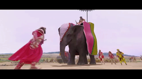 ৪) বাবার কীর্তি দেখুন! হাতির উপর হাওদায় বসে এক রাজা। বাবার হাতের এক থাবায় হাতির মাথা থেকে সরাসরি মাটিতে ল্যান্ড করলেন! ‘মেসেঞ্জার অব গড’-এর হাত বলে কথা! এ তো হবেই।