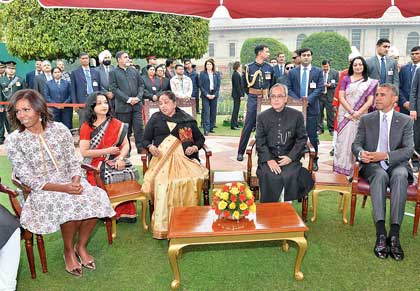 “কেমন আছেন শুভ্রা?” জানতে চাইছিলেন মিশেল। ঠিক সেই মুহূর্তে রাষ্ট্রপতি প্রণব মুখোপাধ্যায় শুভ্রার সঙ্গে আলাপ করিয়ে দিলেন মার্কিন প্রেসিডেন্ট বারাক ওবামা ও মিশেলের। “মিট মাই ওয়াইফ” বললেন রাষ্ট্রপতি। “নমস্তে”। হাসিমুখে শুভ্রাকে অভিনন্দন জানালেন বারাক ওবামা ও মিশেল। জানালেন ভারতে এসে আনন্দিত তাঁরা। শুভ্রাও জানালেন উষ্ণ অভ্যর্থনা। ধন্যবাদও দিলেন পরস্পর পরস্পরকে। মুহূর্তের মধ্যে সৃষ্টি হল আন্তরিকতার বাতাবরণ। বিশ্বের বৃহত্তম গণতন্ত্র ভারত ও সর্বাধিক শক্তিধর রাষ্ট্র মার্কিন যুক্তরাষ্ট্রের দুই প্রথমার মধ্যে যেন ঘটল হৃদয়ের মেলবন্ধন।
