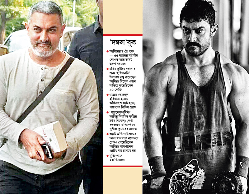 সাদা দাড়ি, সাদা শার্ট, চুল ছোট ছোট করে কাটা এক মাসলম্যান! কোথায় সেই আমির? এ আমির তো ২৫ কিলো ওজন তুলছেন। কোথায় ‘থ্রি ইডিয়টস’য়ের ‘র্যাঞ্চো’? বা ‘ধুম থ্রি’র ‘সমর’? চোখের সামনে সত্যি এক ন্যাশনাল লেভেল রেসলারকে দেখতে পাচ্ছিলাম সে দিন। হলিউড ফিটনেস স্পেশালিস্টদের পরামর্শে আমির তখন পাক্কা ৫০ বছরের মহাবীর সিংহ ফোগত!