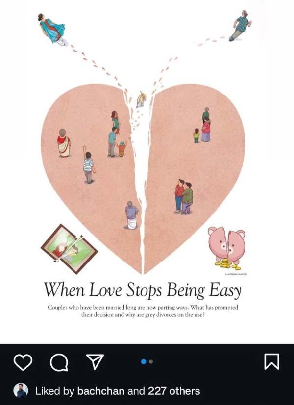 কী ভাবে দিন দিন বিবাহবিচ্ছেদের হার বাড়ছে, তা নিয়েও আলোচনা রয়েছে তাঁর পোস্টে। সেখানে বলা হয়েছে, বিবাহবিচ্ছেদ মোটেও সহজ বিষয় নয়। প্রত্যেকেই স্বপ্ন দেখেন সারা জীবন একসঙ্গে থাকার, বয়স হলেও পরস্পরের হাতে হাত রাখার। কিন্তু সব সময় আশা পূরণ হয় না। একসঙ্গে জীবনের অনেকটা সময় থাকার পরেও ছোট বা বড় বিষয়ের জন্য আলাদা হওয়ার সিদ্ধান্ত মানুষ কী ভাবে নেয়!