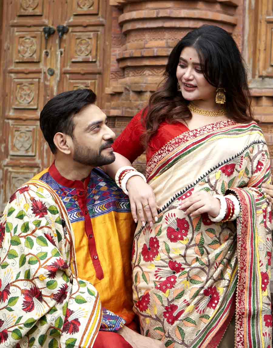টলিপাড়ার আরও এক চেনা অভিনেতার সঙ্গেই পোজ় দিতে দেখা গেল তাঁকে। ঈশান মজুমদার স্টুডিয়োপাড়ার পরিচিত মুখ। প্রথম বার এনার সঙ্গে জুটিতে দেখা গেল তাঁকে। কখনও পাঞ্জাবী, ধুতিতে ঈশান। তার সঙ্গে মিলিয়ে তেমনই সাবেকি সাজে অভিনতেত্রী। দুর্গাপুজোর বিশেষ ফটোশুট। সেখানে সাবেরিয়ানার ছোঁয়া থাকবে সেটাই স্বাভাবিক। পুজোর বিভিন্ন সাজে ধরা দিলেন এনা এবং ঈশান।