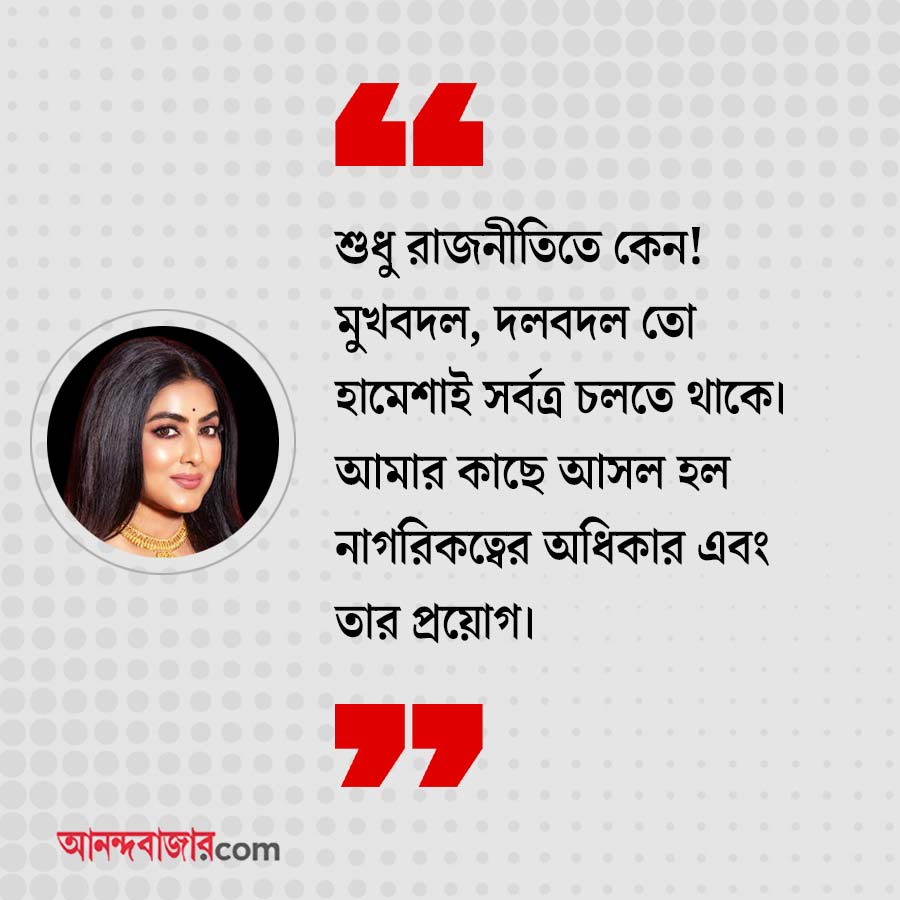 গার্গী: শুধু রাজনীতিতে কেন! মুখবদল, দলবদল তো হামেশাই সর্বত্র চলতে থাকে। আমার কাছে আসল হল নাগরিকত্বের অধিকার এবং তার প্রয়োগ।