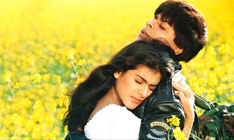 ‘দিলওয়ালে দুলহানিয়া লে জায়েঙ্গে’ ছবির একটি দৃশ্যে শাহরুখ-কাজল। ছবি— সংগৃহীত।