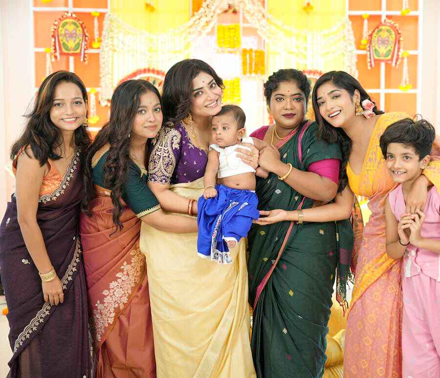 সকাল থেকেই হইহই ব্যাপার সেনগুপ্ত বাড়িতে। অন্নপ্রাশন মানে ছেলের যেন ‘হাফ বিয়ে’। জানালেন ছোটপর্দার খলনায়িকা। ছেলেকে তাই হলুদ পাঞ্জাবি-ধুতি, টোপরে সাজিয়েছিলেন। কিন্তু এত সাজগোজ, লোকের ভিড় দেখে ঘাবড়ে গিয়েছে মাস ছয়েকের অধ্যায়। এ দিকে, গায়ে হলুদ থেকে নান্দীমুখ— সব হয়েছে নিখুঁত ভাবে। “বাকি অর্ধেক বিয়ের জন্য আপনারাই পাত্রী দেখে দেবেন। একদিনেই হাঁফিয়ে গিয়েছি”, হাসতে হাসতে দাবি মানসীর। এ-ও জানালেন, তিনি খুবই শান্ত শাশুড়ি। ছেলে-বৌমাকে দিব্যি সামলে নিতে পারবেন।