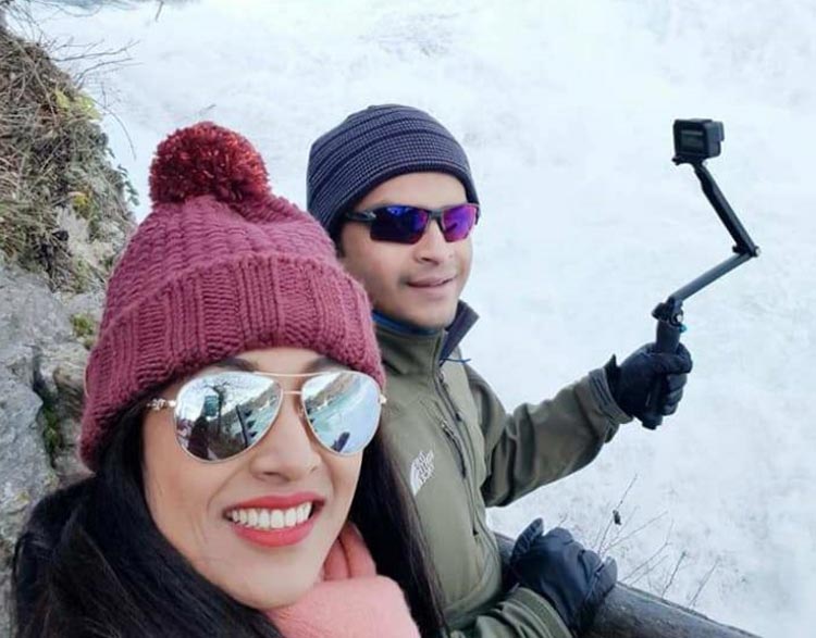 সুইজারল্যান্ডের বরফে ঢাকা পথে বেড়ানোর সেলফি। ছবি: পাওলির টুইটার পেজের সৌজন্যে।