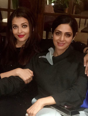 মণীশ মালহোত্রার পার্টিতে ঐশ্বর্যা এবং শ্রীদেবী। — নিজস্ব চিত্র।