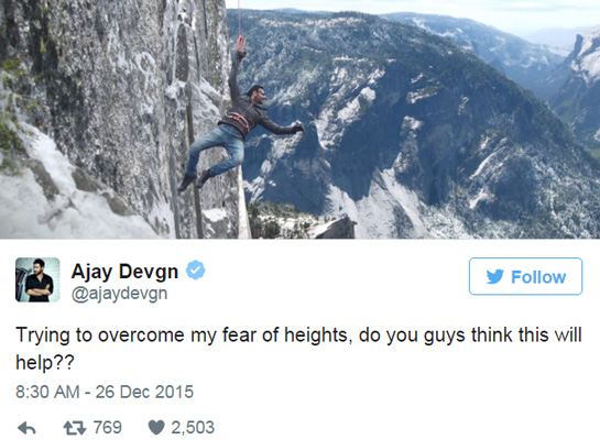 নিজের নয়া ছবি শিবায়-এর ফার্স্ট লুক প্রকাশ করলেন অজয় দেবগণ। ২৬ ডিসেম্বর শিবায়-এর রোমহর্ষক অ্যাডভেঞ্চার সিন টুইট করার পর থেকেই হিট। ছবিতে দেখা যাচ্ছে শুধু একটা দড়িতে পাহাড়ের কোলে ঝুলছেন অজয়। কোনও বডি ডবল নয় এই বলি স্টার নিজেই এই বিপজ্জনক স্টান্ট করেছেন।