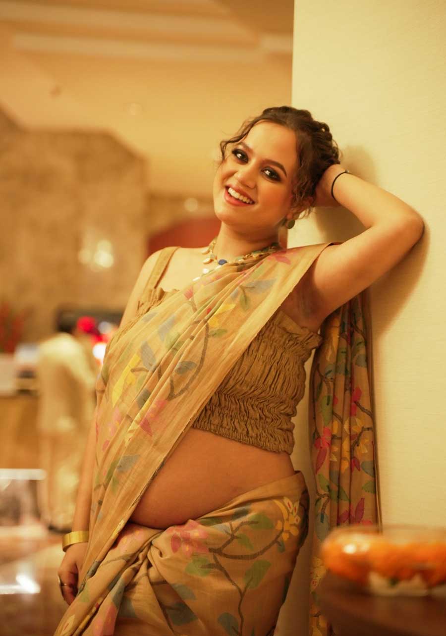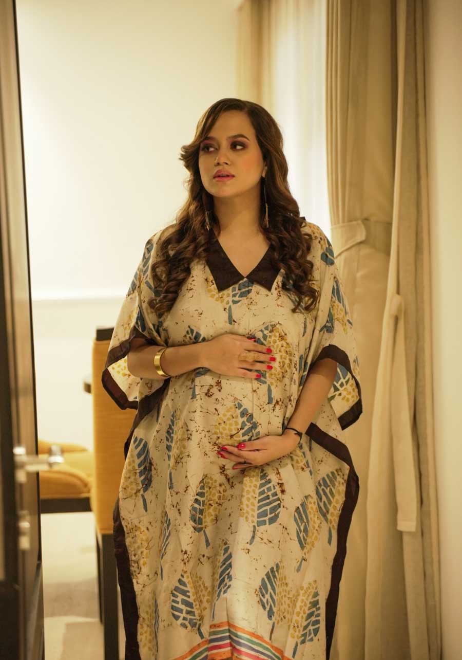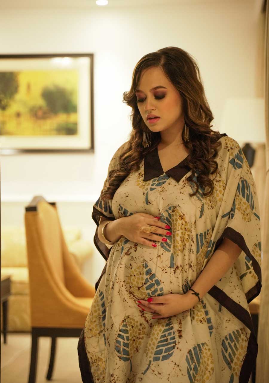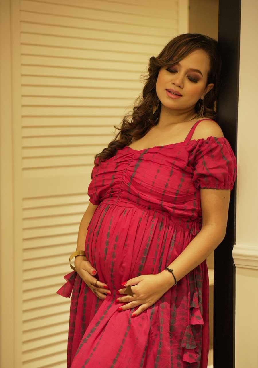 আলাদা করে এখনও মাতৃত্বকালীন ফোটোশুটও করা ওঠা হয়নি অহনার। তাই আনন্দবাজার ডট কমের এই প্রস্তাবে রাজি হয়ে যান তিনি। পোশাকও পছন্দ হয়ে যায় তাঁর। গরমকালের কথা মাথায় রেখে অহনার জন্য বেছে নেওয়া হয় গাঢ় গোলাপি রঙের হাতে ডাই করা শিবরি পোশাক।