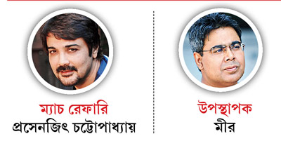 অন্যদিকে প্রসেনজিতের ভূমিকাও এ বছর এক্কেবারে আলাদা। এই প্রথম বার তিনি ম্যাচ রেফারি!