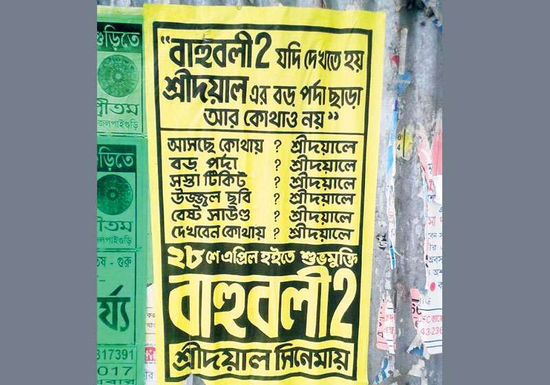 অরিজিৎবাবুর সুরই এখন গ্রাম বাংলার সিংহভাগ হলমালিকের মুখে। মাল্টিপ্লেক্সের জাঁক আর পাইরেসির চাপ— এই দুইয়ের চাপে ধুঁকতে বসা সিঙ্গল স্ক্রিন হলের মালিকেরা বাহুবলীর বাহুবলেই অনেক দিন পরে স্বস্তির শ্বাস নিচ্ছেন। জলপাইগুড়ির শ্রীদয়াল সিনেমার মালিক পরীক্ষিৎ ঘোষ তো নিজে ভেবে বাহুবলী টু-এর জন্য নতুন পোস্টারই বানিয়ে ফেলেছেন। তা রীতিমতো ভাইরাল হয়ে গিয়েছে সোশ্যাল মিডিয়ায়। পরীক্ষিৎবাবুর কথায়, ‘‘গত দেড় বছরে আমার যা ব্যবসা হয়েছে, বাহুবলী একা সেই ব্যবসা করেছে।’’