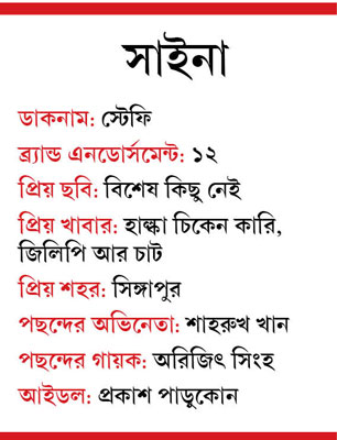 এখন নেহওয়াল পরিবারের ‘স্টেফি’। ‘‘এত ব্র্যান্ড যে আমার ওপর ভরসা রেখেছে সেটা সত্যি বড় ব্যাপার,’’ বেঙ্গালুরু থেকে আনন্দplusকে সোজাসাপ্টা জবাব সাইনার। এবং সে জন্যই খেলার বাইরের জগৎটাকেও গ্ল্যামারাস করেছেন ব্যা়ডমিন্টন আইকন। ‘‘ফ্যাশন ডিজাইনাররা যে দিন-দিন আমার কথা ভাবছেন সেটা ভেবে ভাল লাগে। বাকিটা ওপরওয়ালার হাতে,’’ বলছেন সাইনা।