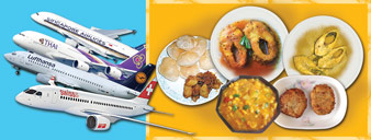 বিমানবন্দর সূত্রের খবর, কলকাতার তাজ এবং ওবেরয় কেটারিং থেকে খাবার তোলে সিল্ক এয়ার, ড্রাগন এয়ার, ভুটান ও কাতার এয়ারওয়েজ। মুরগির ঝোল, ধোকার ডালনা, ছানার পায়েস পাওয়া যায় তাদের মেনুতে। কিন্তু এমিরেটস, সিঙ্গাপুর এয়ারলাইন্স, তাই এবং