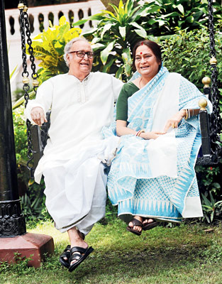 শনিবার সকালে ছবির ফোটোশ্যুটের আগে এই ছবি নিয়েই কথা হচ্ছিল স্বাতীলেখার সঙ্গে। “এই ধরনের একটা চরিত্র আমি এর আগে মঞ্চে করেছি। সে নাটকের নাম ছিল ‘বেলাশেষে কোলাহল’। তবে ব্যক্তিগত জীবনে আমি কোনও দিন এ রকম কাউকে দেখিনি যিনি বার্ধক্যে এসে বিচ্ছেদে রাজি হয়েছেন,” বলছেন তিনি। যদি সন্দীপ অন্য রকমের হত, তা হলে কি মক্ষীরানি একদিন সিলভার সেপারেশনের কথা ভাবতেন? “না, আমার তা মনে হয় না,” বলছেন স্বাতীলেখা। যাদবপুর বিশ্ববিদ্যালয়ের সমাজতত্ত্ব বিভাগের প্রধান বলছেন, “আমাদের সমাজের সোশ্যাল সিকিউরিটির স্ট্রাকচারটা বিদেশের থেকে অনেকটাই আলাদা। রিটায়ারমেন্টের পর তো এখানে নির্ভরতাটা আরও বেড়ে যায়। সে রকম একটা স্ট্রাকচারে এই ট্রেন্ডটা বাড়তে থাকলে সেটা খুব একটা ভাল হবে না।” তবু যে বলা হয় একঘেয়েমি আসতেই পারে। এমনকী একজন পার্টনার আরেক জনকে ‘আউটগ্রো’ করে যেতে পারেন। জীবনের সায়াহ্নে এসে দম বন্ধ করে থাকার কি প্রয়োজন আছে? সৌমিত্র চট্টোপাধ্যায়ের মতে, “কোনও ধরা বাঁধা নিয়ম থাকে না। আমার জীবনে প্রচুর উদ্বেগ রয়েছে। টেনশন রয়েছে। হতাশা আছে। খানিক নিঃসঙ্গতাও আছে। তবে সেগুলো কাটানোর জন্য বই আছে, লেখালিখি আছে, রং-তুলি আছে। গ্রন্থই আমার গ্রন্থী। আমি কাউকে বিচার করছি না। তবে হয়তো কিছু হাইপার রোম্যান্টিকস আছেন যাঁরা প্রশ্ন করেন চিরকালের নবীনা বৌটি কেন নেই আর? আমি যা পেয়েছি ব্যক্তি জীবনে, তাতে পরিপূর্ণ না হলেও সন্তুষ্ট। জীবনের অনিবার্য নিয়মে, পেশার কারণে আই হ্যাভ বিন চেজড বাই উইমেন। এতে ব্র্যাগ করার কিছু নেই। আত্মতৃপ্তির কিছু নেই। আবার গেল গেল রব তোলারও কিছু নেই। এ বয়সে এসে স্ত্রীর প্রতি নির্ভরতা বেড়ে যায়। একটা নীরব তাকানো, দুঃসংবাদ এলে এক রকম ভাবে ফেস করা এটাই অনেক। যদি কেউ বলেন যে বিয়েতে আর কিছু দেওয়ার নেই, তা হলে বলতে হয় তিনি নিজেই ফুরিয়ে গিয়েছেন।”