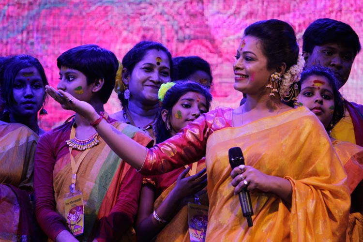 বসন্ত উত্সবের মঞ্চে ইমন। ছবি: অ্যাডভার্বের সৌজন্যে।
