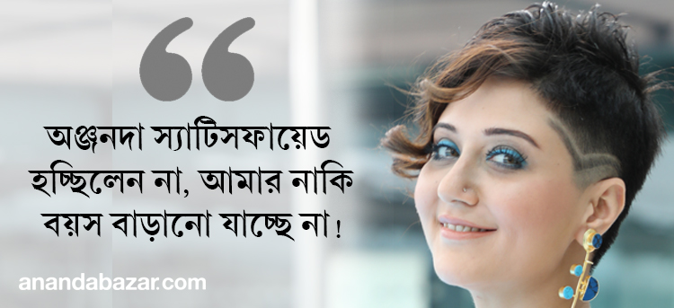 দেখুন, এখানে ২২ বছরের মেয়ের মায়ের রোল করেছি। আমার মেয়ের তো এখনও অত বয়স হয়নি। ফলে সেটাকে বিশ্বাসযোগ্য করে তুলে ধরাটা চ্যালেঞ্জ ছিল। এক মহিলা, যে সারা দিন মদ খায়, সিগারেট খায়— এগুলো ক্যারেক্টার বিল্ডআপে এফেক্ট করে। অঞ্জনদা প্রথমে কিছুতেই স্যাটিসফাই হচ্ছিলেন না। কিছুতেই নাকি আমার বয়স বাড়ানো যাচ্ছে না!