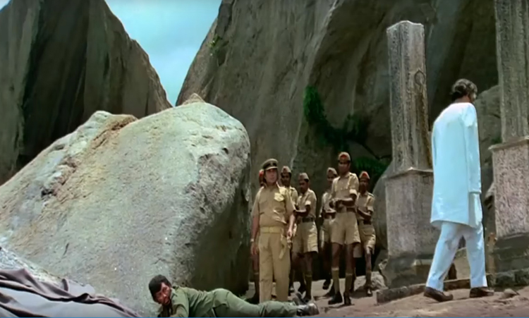 ‘শোলে’র শেষ দৃশ্যে ‘গব্বর’কে গ্রেফতার করতে আসছে পুলিশ। ছবি: ইউটিউবের সৌজন্যে।