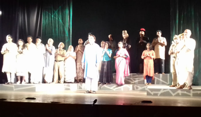 দিল্লির ন্যাশনাল স্কুল অব ড্রামা-র অডিটোরিয়ামে নাটকের একটি দৃশ্য। —নিজস্ব চিত্র।