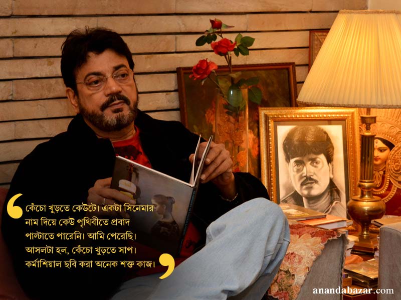 দেখুন, আমি ক্রিকেট খেলি। হঠাত্ বললাম, আমি ফুটবলটাও খেলতে পারব, হয় না ওটা। অঞ্জন দত্ত বললেন, আমি কর্মাশিয়াল করব। ‘গণেশ টকিজ’ বানালেন। তেমন চলল কি? এটা অত সহজ খেলা নয়। আমার খুব প্রিয় মানুষ অঞ্জন। কিন্তু আমি বলতে চাইছি, আমরা যেটা বানাই সেটাই ছবি, আর কর্মাশিয়াল যে কেউ বানাতে পারে, এই ভাবনাটা ঠিক নয়।