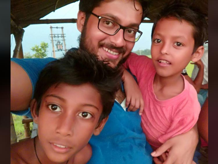 পরিচালকের সঙ্গে দুই খুদে অভিনেতা। শ্রীরামপুর প্রাথমিক বিদ্যালয়ের ক্লাস থ্রি-র পড়ুয়া আশিক শেখ এবং আরিফ শেখ।