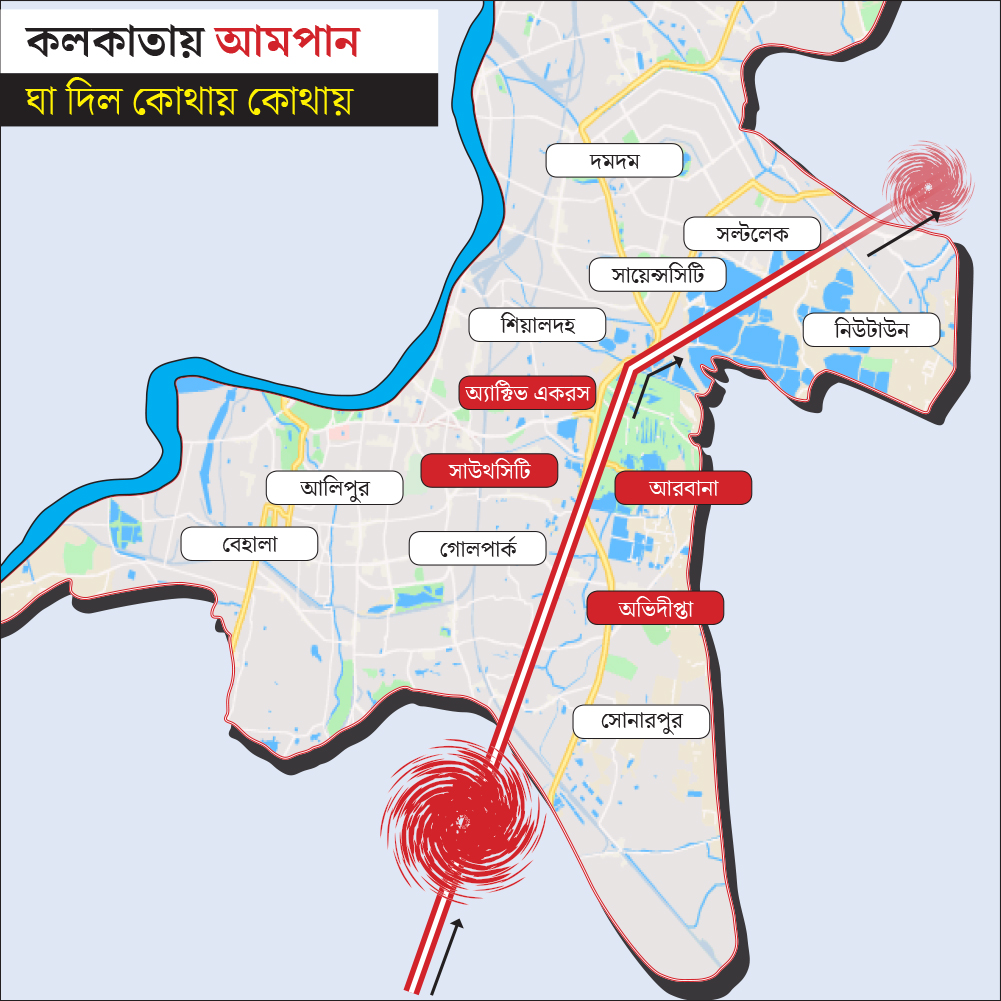 মে মাসের কুড়ি তারিখ। চারিদিক থমথমে। বিকল সাড়ে চারটে, বিধ্বংসী আমপান (প্রকৃত উচ্চারণ উমপুন) নিজস্ব রুটম্যাপে তখন ভয়ার্ত চেহারা নিয়েছে সুন্দরবনের বুকে। যখন সোনারপুরে সে এসে পৌঁছল তখন সময় আন্দাজ ৬টা ৪০-মিনিট। গতিবেগ ঘণ্টায় ১২০ কিলোমিটার। সেখান থেকে মেট্রোপলিটন বাইপাসের বহুতল 'আরবানা'-য় পৌঁছতে তার হাতে গোনা সময় লেগেছিল। এ এমন এক বহুতল যেখানে টলিউডের বহু সেলিব্রিটির ভিড়।