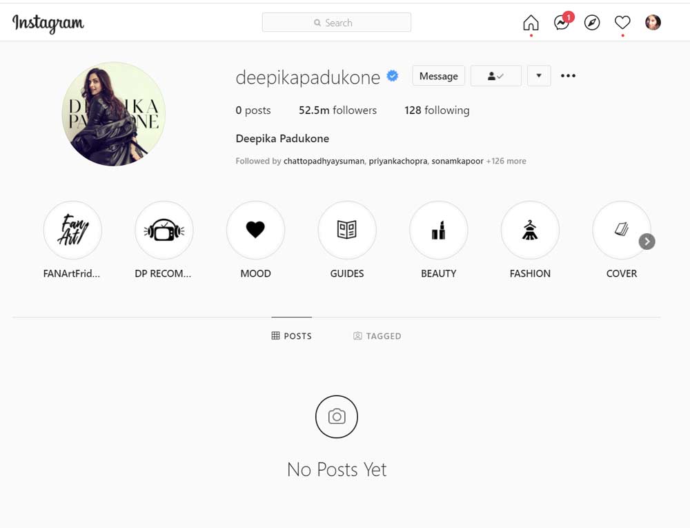 পোস্ট ও ছবি মুছে দেওয়ার পর এ রকমই চেহারা ছিল দীপিকার ইন্সটাগ্রাম পেজের